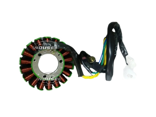 Forma parte del generador o alternador de la motocicleta allí se encuentran alojadas las bobinas que alimentan los diferentes circuitos eléctricos (encendido lucescarga etc)